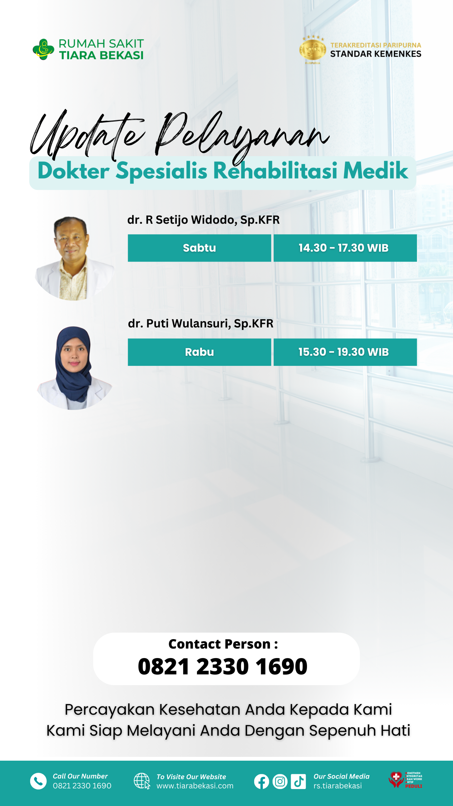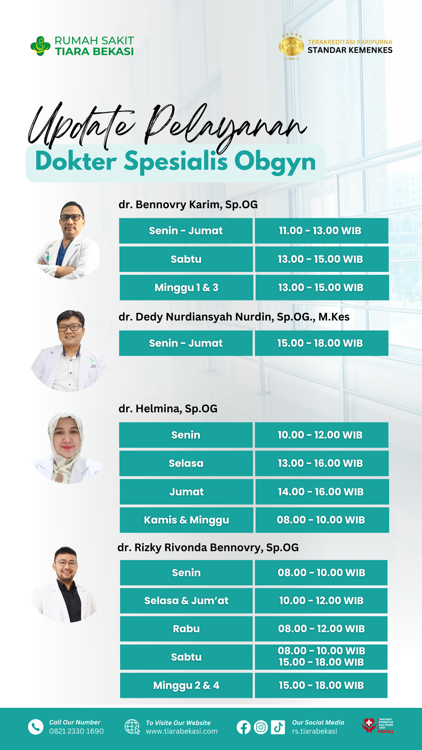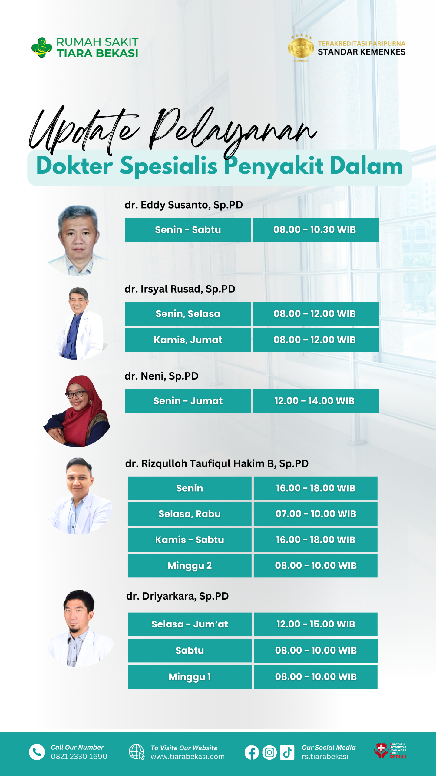 RS TIara BEKASI Jadwal Dokter Buat janji temu sesuai dengan jadwal dokter berikut ini. pendaftaran online