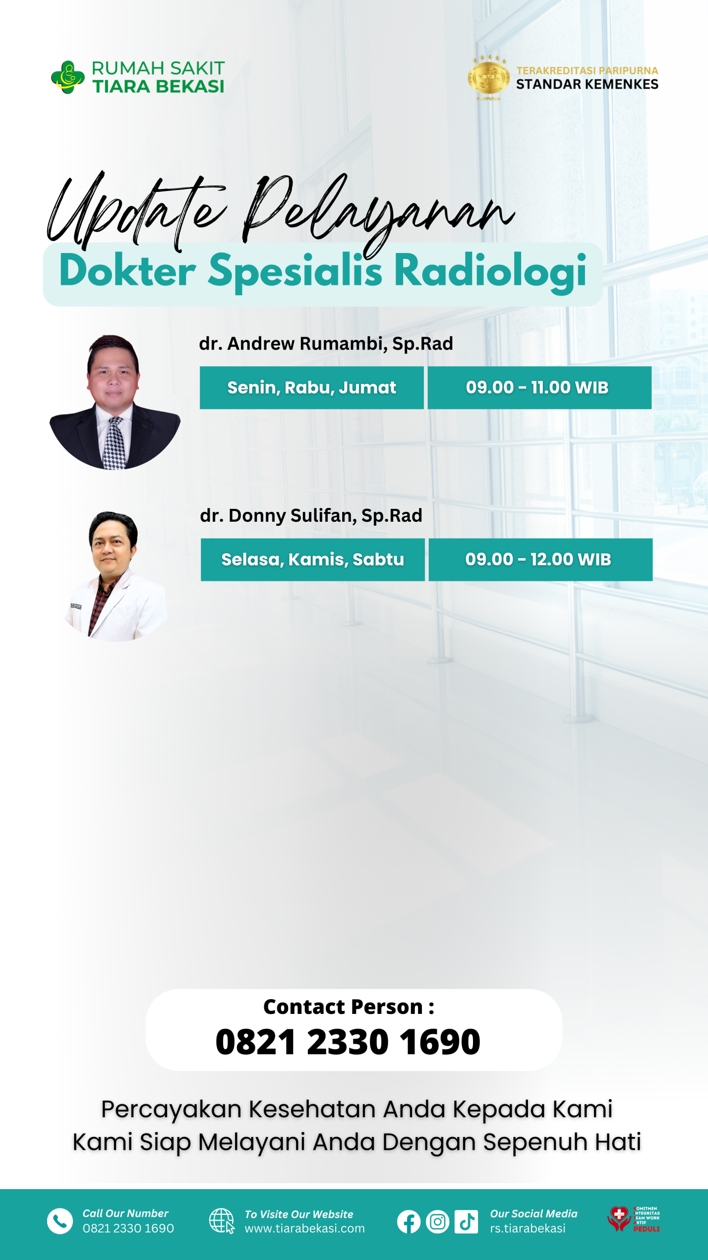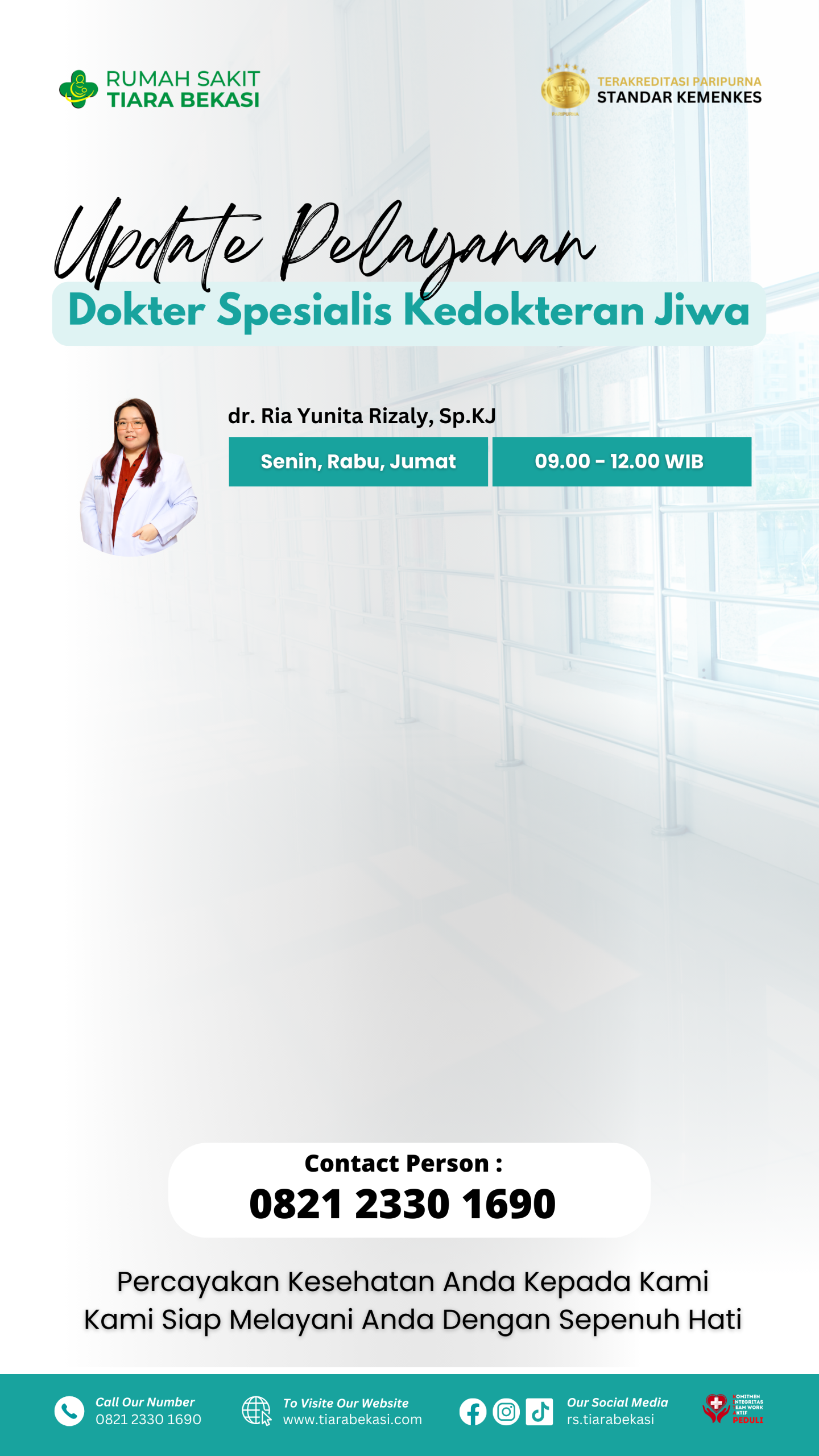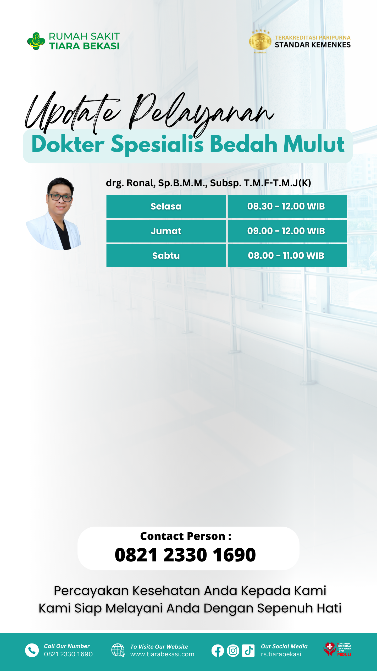 RS TIara BEKASI Jadwal Dokter Buat janji temu sesuai dengan jadwal dokter berikut ini. pendaftaran online
